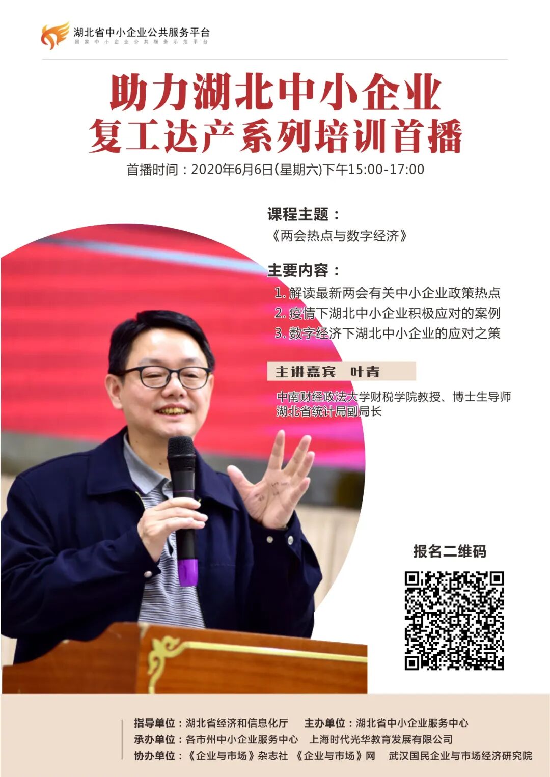 湖北省中小企業(yè)服務(wù)中心組織的《助力湖北中小企業(yè)復(fù)工達(dá)產(chǎn)系列培訓(xùn)首播》,我講第一講,三個(gè)問(wèn)題,每個(gè)問(wèn)題半個(gè)小時(shí):兩會(huì)熱點(diǎn)、數(shù)字經(jīng)濟(jì)、十四五規(guī)劃。