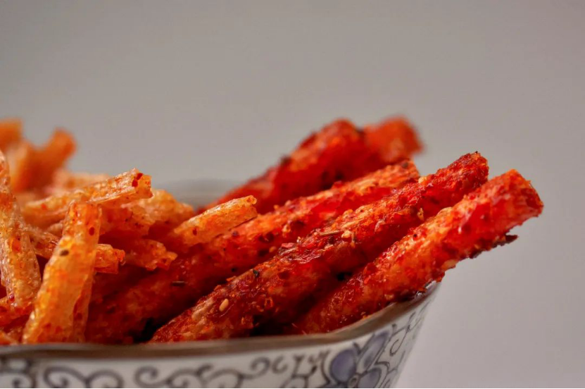 辣條在生產(chǎn)過程中使用的都是廚房調(diào)味料,其生產(chǎn)完成后還要經(jīng)過衛(wèi)生、口感、軟硬度等系列檢測之后,才能上市。