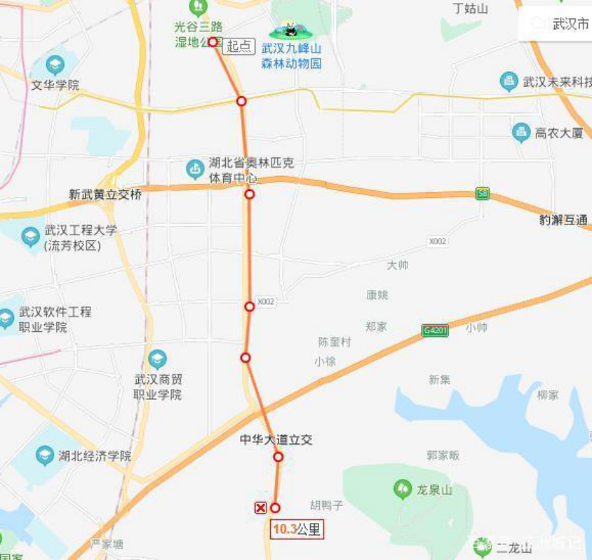 光谷生態(tài)大走廊空中軌道一期工程線路全長約10.5km,設(shè)站6座,全高架敷設(shè)。